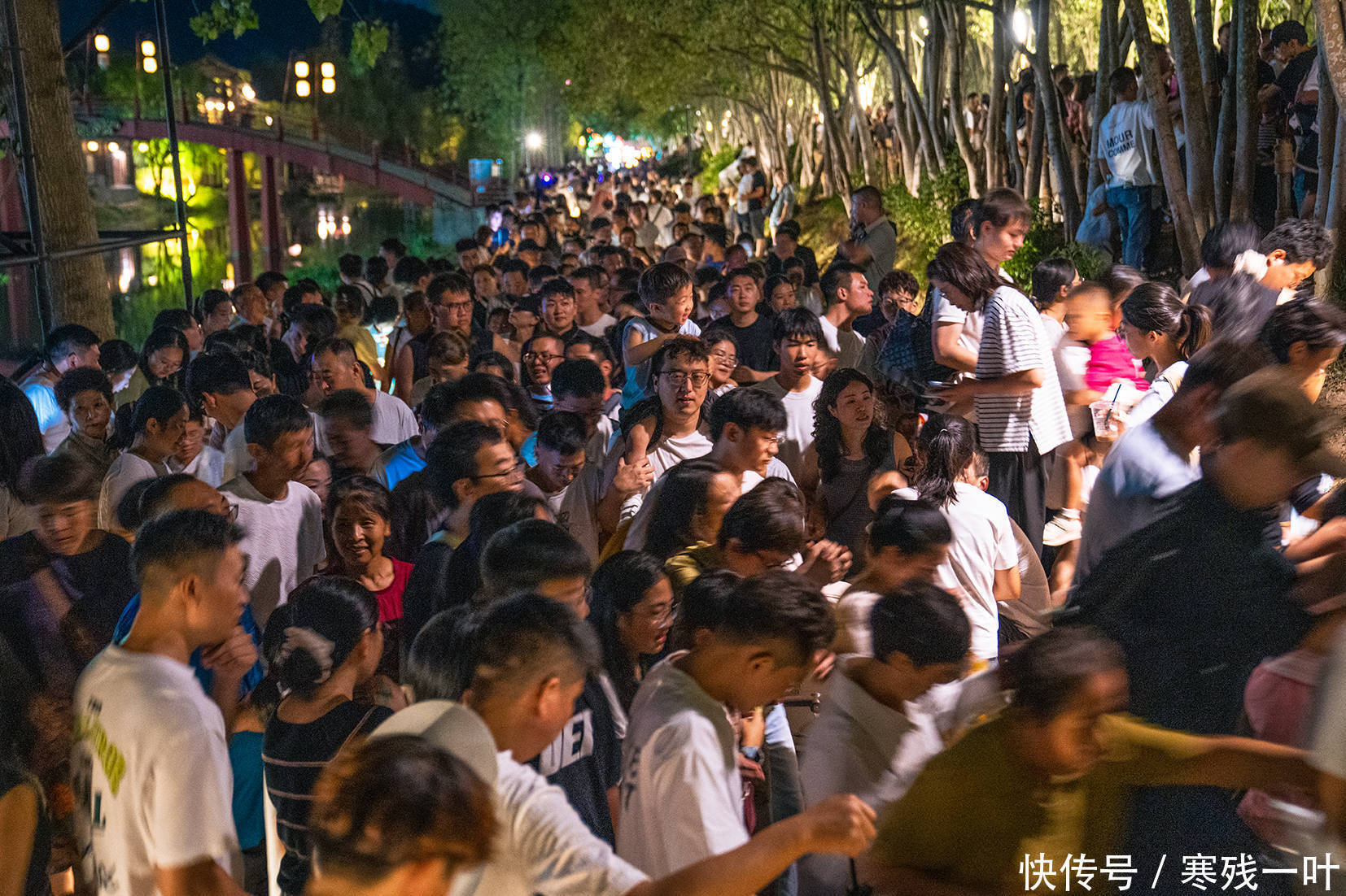 唐城水岸夜色迷人,《无忧渡》里经典的 “深夜摆渡” 名场面,在这片拍摄取景地的水面上重现。独竹水上漂、打铁花更让人大开眼界,叫好声此起彼伏,大家举着手机狂拍,生怕错过任何一秒。再看观看平台,密密麻麻全是人,连缝隙都难找;马路上的游览车排成长队,一眼望不到头,这壮观劲儿,说是 “人山人海” 都不为过。